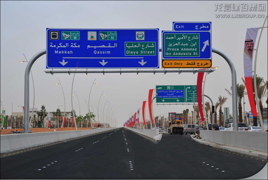 項目位于沙特首都利雅得市阿仆杜拉國王大道上,全長5KM,分為阿卜杜拉•阿齊茲地下通道、歐萊雅路-法赫德國王路隧道、塔卡蘇斯地下通道及普瑞恩施•土耳其路地下通道??偘綖樯程貖W吉公司,龍信公司分包該項目的全部混凝土結構工程,澆筑混凝土達到16萬立方,分包合同總金額為3200.00萬里亞爾。于2008年9月開工,并在2011年02月完工,工期比總包方規定的時間提前了半年,并且質量上面受到了總包的一片好評。