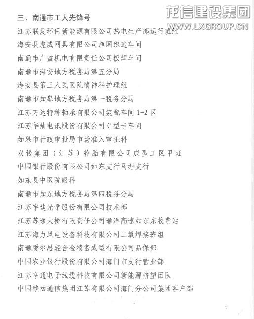 4月28日,南通市慶祝“五一”國(guó)際勞動(dòng)節(jié)暨五一勞動(dòng)獎(jiǎng)命名大會(huì)在市行政中心報(bào)告廳隆重召開(kāi)。市委常委、組織部部長(zhǎng)馮軍,市人大常委會(huì)副主任、市總工會(huì)主席葛玉琴,市政府黨組成員、市勞動(dòng)競(jìng)賽委員會(huì)主任朱晉,市政協(xié)副主席陳宋義等領(lǐng)導(dǎo)出席會(huì)議。會(huì)上宣讀了《關(guān)于命名南通市五一勞動(dòng)獎(jiǎng)狀獎(jiǎng)?wù)潞湍贤ㄊ泄と讼蠕h號(hào)的決定》,一大批為推動(dòng)我市經(jīng)濟(jì)社會(huì)高質(zhì)量發(fā)展做出突出貢獻(xiàn)的先進(jìn)集體和先進(jìn)個(gè)人被命名。龍信集團(tuán)樂(lè)頤薈老年公寓榮獲“南通市工人先鋒號(hào)”,工會(huì)主席卞勤華出席會(huì)議并領(lǐng)獎(jiǎng)。